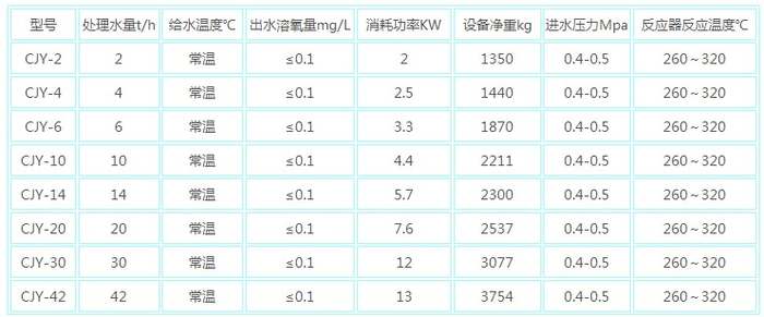 待處理的水由除氧泵輸送至引射器,水以一定流速通過引射器時,形成一定的負壓,將無氧氣體吸入。水與無氧氣體在混合管中充分混合,然后進入解析器,水中溶解的氧在解析系統(tǒng)中擴散到無氧氣體中。帶氧氣體自解析器頂部進入氣水分離器,經(jīng)氣水分離器脫水后進入換熱器升溫至60~80℃左右,進入加熱器,然后進入反應器,與反應器中的還原劑反應后重新成為無氧氣體,再進入下一個循環(huán),從而達到連續(xù)工作的除氧目的。